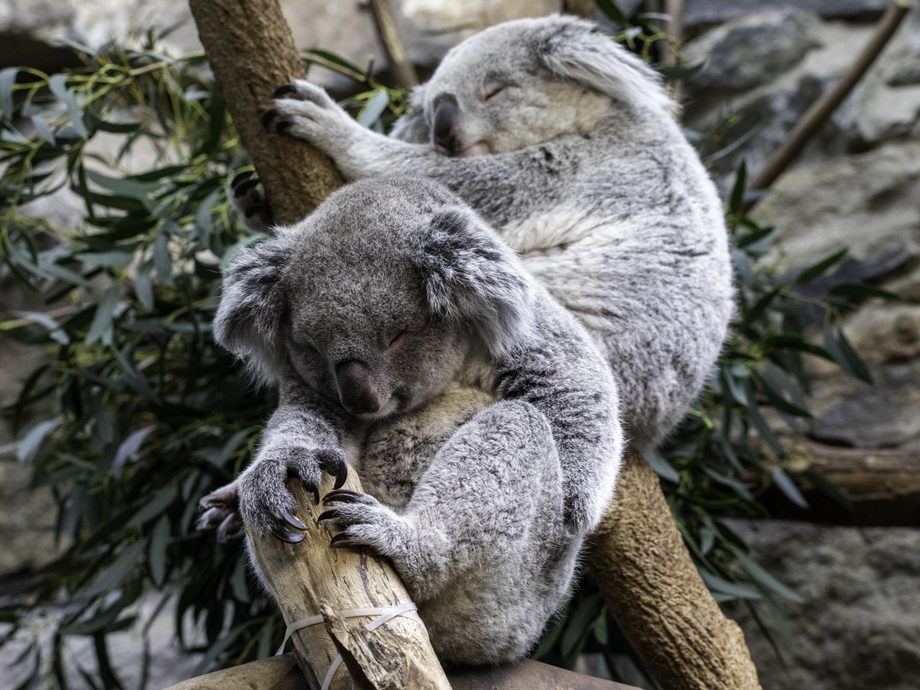 Koalas are well known for their slow lifestyle, which includes around 20 hours of sleep. This behaviour is because of their diet. They eat eucalyptus leaves, which are very low in nutrient and energy, and take a long time to digest. On top of this, eucalyptus is toxic, so by taking things slow they can process it safely. They are the only animal to eat eucalyptus.