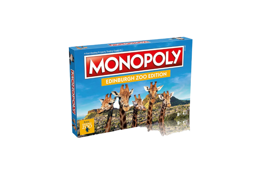 Choose your favourite animals to adopt and build the enclosures and habitats they need to thrive with our exclusive Edinburgh Zoo monopoly! Watch out for sneaky tricks from other family members...