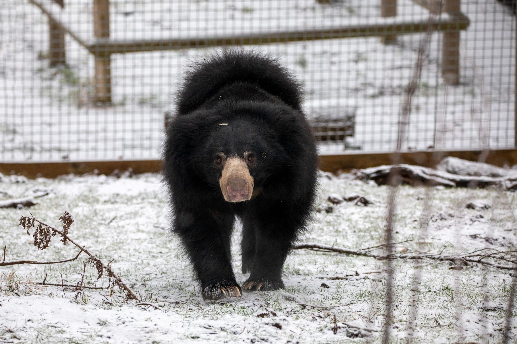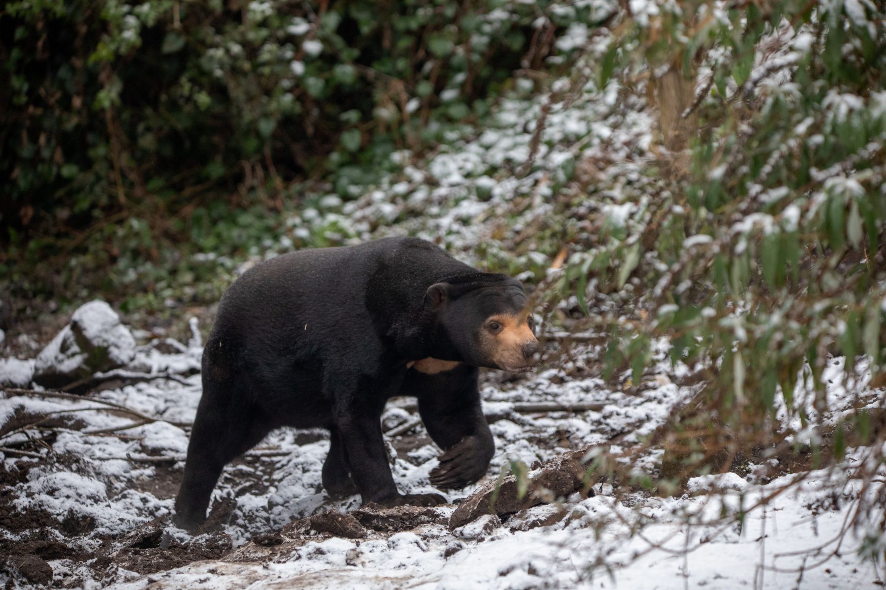 The wildlife conservation charity’s other animals, including Cipi the sloth bear and Quill the camel, also enjoyed exploring in the snow.